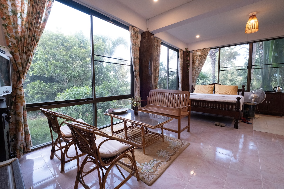 Stay in a peaceful first‑floor garden view room in Wiang Pa Pao, Chiang Rai. Surrounded by greenery, this private space features a comfortable bed, fresh linens, and its own private bathroom. Guests also enjoy access to shared amenities including a fully equipped kitchen, covered parking, and tranquil garden spaces. Wi‑Fi ensures convenience, while the serene countryside setting offers the perfect balance of comfort and nature. Ideal for solo travelers or couples.