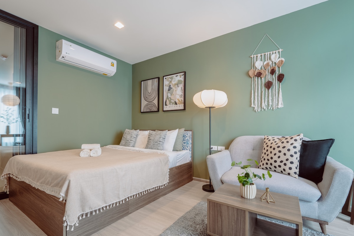 ️Inte ett hotell!️ Phyll Phuket erbjuder den perfekta blandningen av stadens bekvämlighet och lugn vid stranden. Koppla av och varva ner på vår expansiva sandiga centrala innergård. - Största och bästa gemensamma utrymmet i området, privat och säkert - Unik 1 BR layout med den bästa utsikten från balkong och sovrum. - In-house privat höghastighets WiFi. - Gratis transport till centrala Phuket Floresta köpcentrum. - 10 minuters resa till Phuket Old Town - 15 minuters bilresa till Patong Beach - 5 minuters bilresa till King Power Phuket.