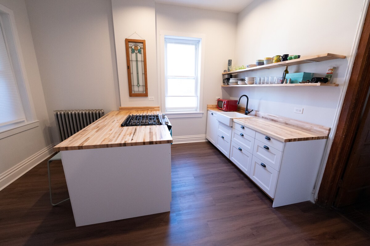 Vår lägenhet ligger på en lugn gata i ett trendigt grannskap som alltid har något coolt på gång. Wicker Park är en knutpunkt för aktivitet som lockar shoppare som är på jakt efter unika fynd, matälskare som letar efter de trendigaste måltiderna och barhoppare som söker efter nattliv. Perfekt för par, ensamresenärer, affärsresenärer och små grupper som letar efter en central, bekväm plats. COVID-anteckning: Vi anstränger oss extra för att desinficera och sanera alla ytor under varje rengöring.