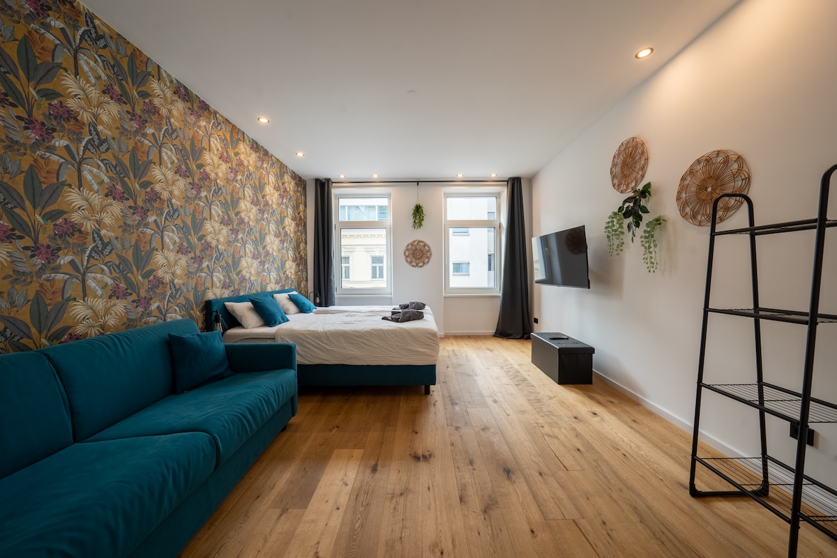 English: City life but make it comfy? Welcome to the Nest, where Vienna feels like a village while vibrant city life is only 10 minutes away! The spacious flat offers every amenity your heart desires- fast internet, a large comfy bed, AC, a cozy couch for long movie nights and a well equipped kitchen for cooking experiments - you basically don't need to leave the house in all pandemic fashion style.