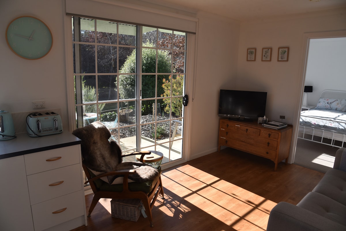 Den bekväma, moderna, industriella lägenheten ligger i en privat oas av ett trädgård. Här finns en dubbelsäng, sängkläder av hög kvalitet, snabbt obegränsat wifi och Netflix. Några underbara kycklingar och en svart katt (Alice) kan säga hej. Beläget 15 minuters promenad till CBD, och 5 min till butiker och andra förnödenheter. Säker parkering på gatan direkt på framsidan.