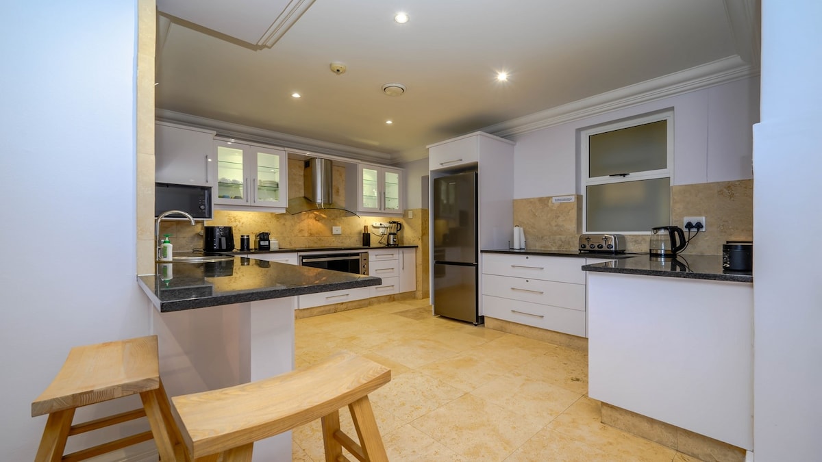 Denna exklusiva studio vid stranden ligger i slutet av strandpromenaden i hjärtat av Umhlanga Rocks Village och är utformad för att uppfylla alla dina förväntningar. Hisnande utsikt, sånger av havsvågorna, de mest fantastiska soluppgångarna, privat bastu och lyxiga möbler och inredning välkomnar dig! Utrustad med en vattentank, ett vattenfilter och en växelriktare för ökad komfort för gästerna (dvs. drickbart kranvatten och ingen belastning och vattenavskiljning).