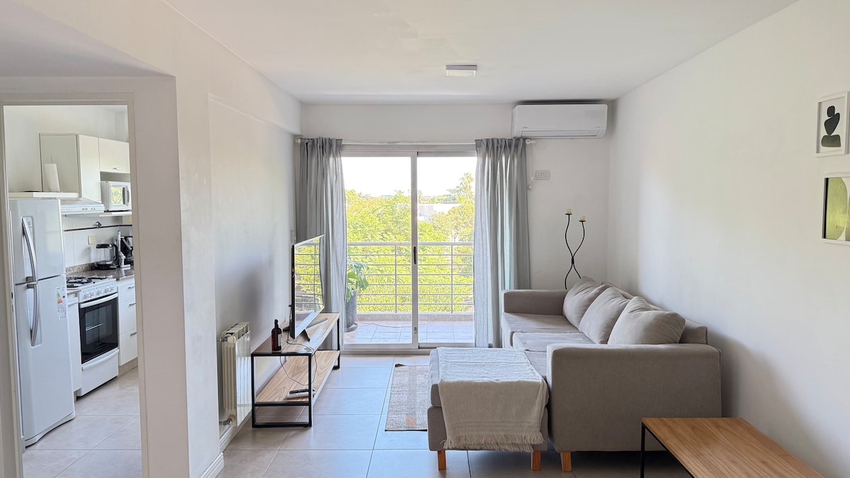 Excelente ubicación a metros de Zona Gastronómica, a 350mts de la Estación de tren y a 10 minutos de Parque Leloir. •Balcón . •Super luminoso •60 mts cubiertos, con espacios amplios. Living comedor, cocina separada, baño completo con bañera, dormitorio. •Aire Acondicionado frio calor en living y otro en la habitación. •Lavarropa, Heladera, Cocina completa para 4 personas . •Ropa Blanca. •Servicio Internet y wifi, Cable, TV Smart 55 pulgadas. •Sommier Matrimonial y Sofá Cama •Cochera cubierta ok