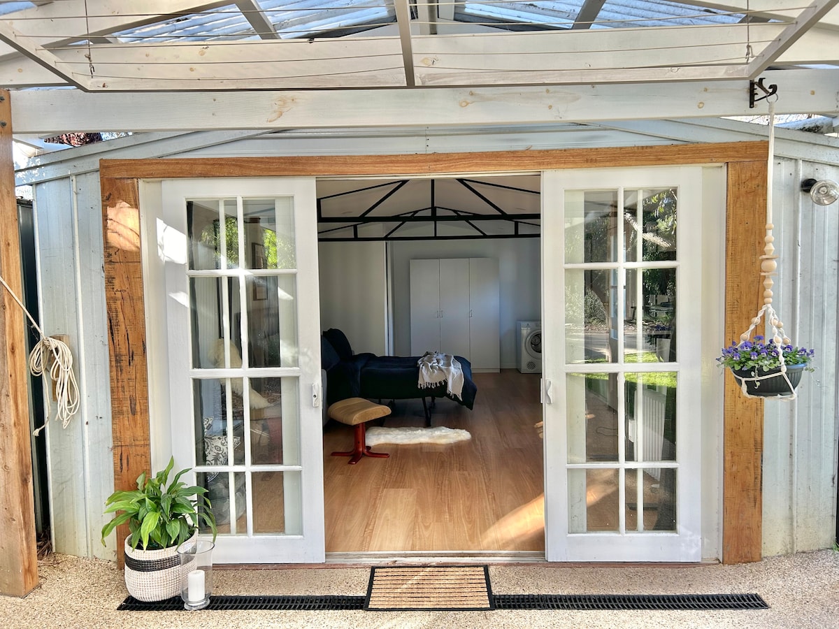Söndagar är endast tillgängliga på begäran, endast när du bokar lördagar "Peaceful Pines Country Stay" ligger nära staden Birregurra, Vic, Australien. Detta unika ställe har en helt egen stil. Erbjuder en lugn, romantisk, lugn vistelse, erbjuder utomhusbad, bastu och eldgrop. Möjlighet att interagera med husdjur om så önskas. Beläget bara 6 minuter från Brae - en av Australiens bästa restauranger. Endast 45 minuter till Geelong, 90 minuter till Melb flygplats