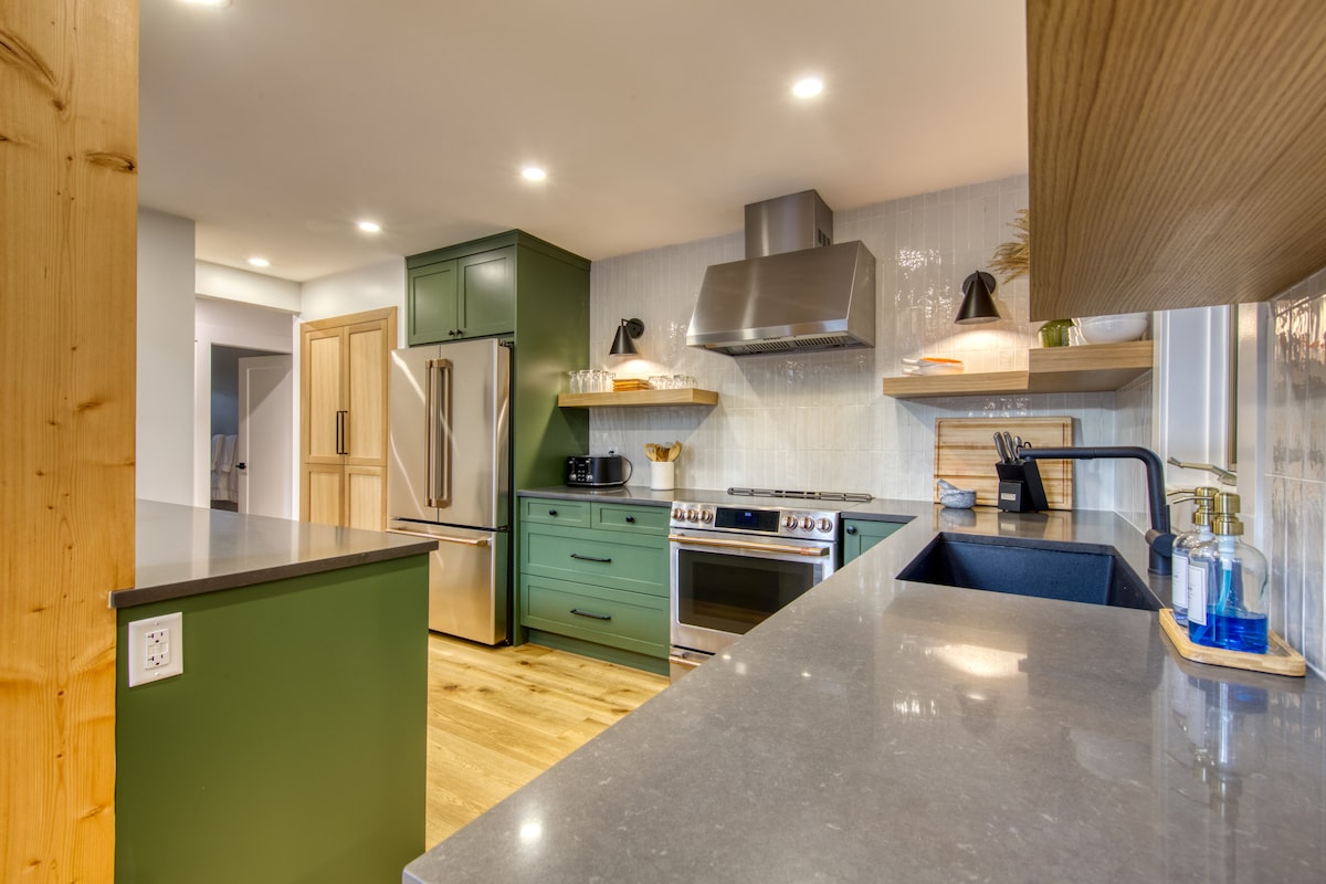 Private home with large yard-designer furnishings, 3 luxury beds + outdoor games room. NEW seasonal outdoor Games room w pool table, 2 dart boards, 21’ bar & pac man arcade.Walk to Beach & DT, Nelson Athletic Park. Free shuttle to Pano pu across street. This property offers Beautiful mountain views, private gated & fenced yard, fire pit seats 6 in a landscaped yard, garden w loungers. Complete with outdoor kitchen Bbq and pizza oven. It’s a Private resort for all to enjoy a