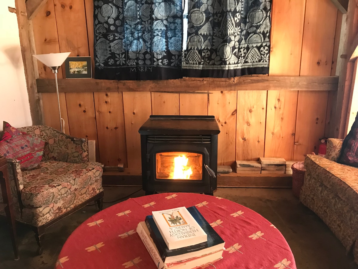 This is a two-story, renovated barn adjacent to the chicken coop in rural Vermont with views of the forests. It has brand new floors, a new kitchenette, and fresh look. (Some renovation is still taking place.) The chicken coop is just next door but the birds are free-range and range they will. Enjoy a private, hot shower in the garden, just outside. This listing is only suitable for people comfortable with dogs, cats, and chickens which will undoubtedly greet you outside during your stay.
