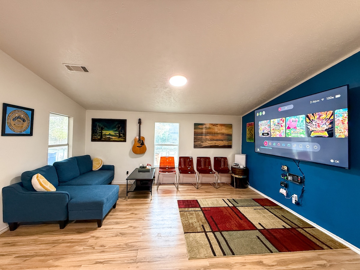 Välkommen! Detta nybyggda hus ligger i centrala Austin med enkel tillgång till centrum, Moody Center, UT, Asian Town och Domain. Du är mindre än 10 minuter från alla dessa områden och 30 minuter med kollektivtrafik. Njut av en lokal Austin-upplevelse genom att få tillgång till närliggande lokala favoritrestauranger, barer och butiker. Det tvåvåningshuset har 70-tums 4K-TV, EV-laddare, kaffemaskin, skrivbord, lädersoffa för att du ska ha en elegant upplevelse på detta centralt belägna boende i Austin.