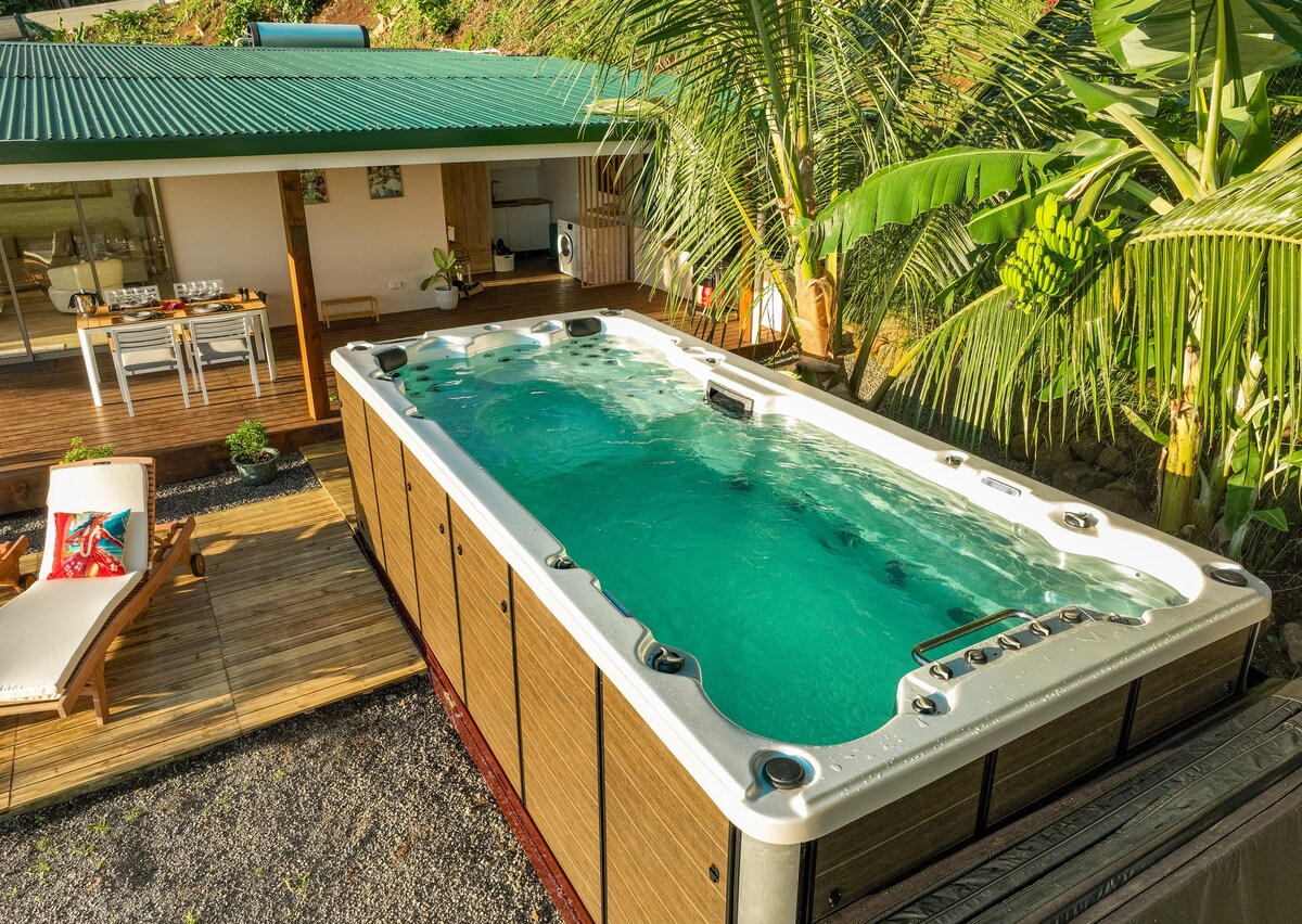 Välkommen till din fridfulla tillflyktsort i paradiset! Denna rymliga villa på 100 m² med en privat terrass och jacuzzi är den perfekta platsen för att koppla av, omgiven av frodig grönska och med utsikt över lagunen. Varje kväll kan du njuta av fantastiska solnedgångar i en lugn och exotisk miljö. Villan är inspirerad av neo-polynesisk arkitektur och blandar lokal charm med modern komfort för att erbjuda dig en oförglömlig vistelse.