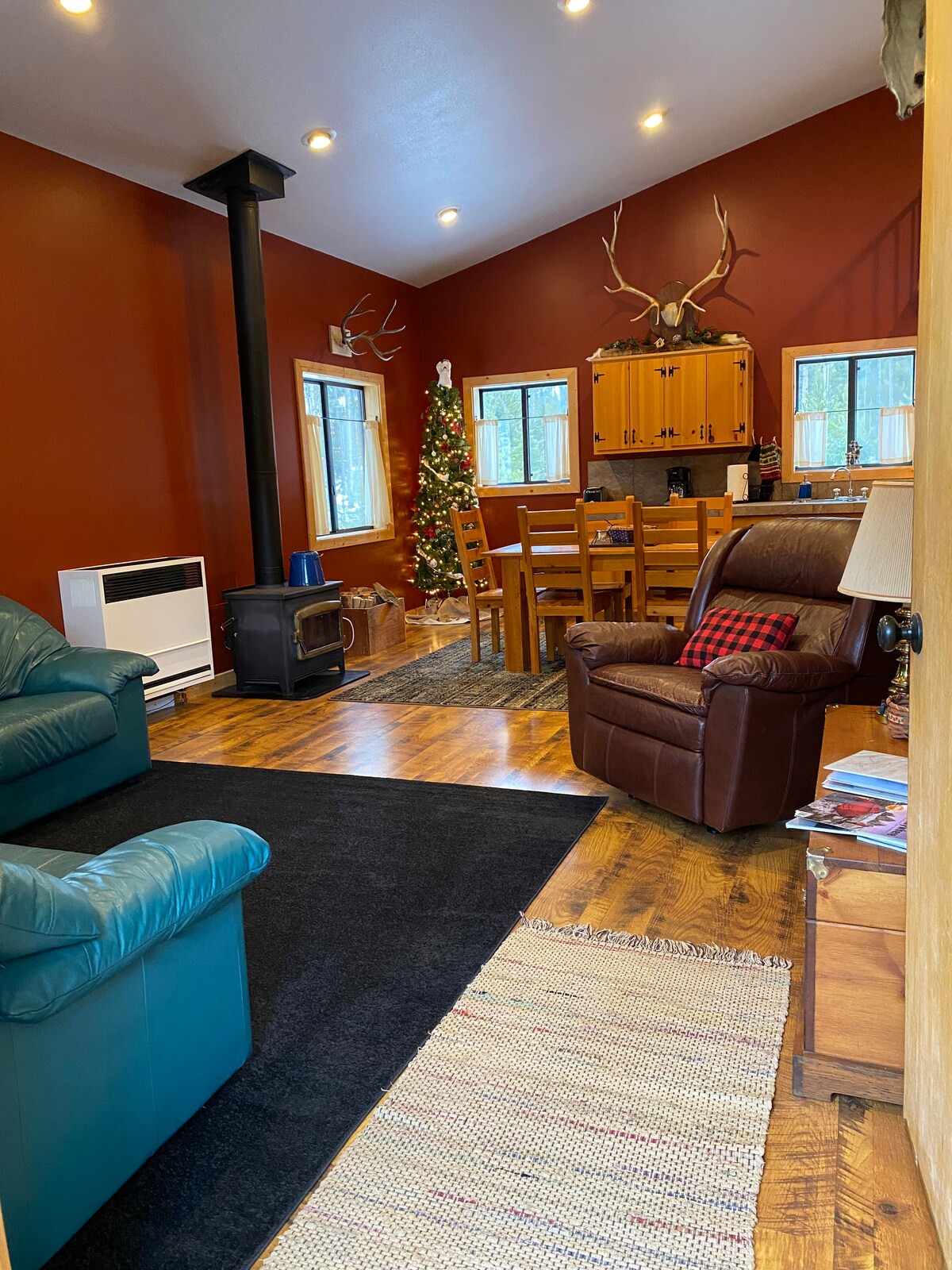Come "unplug" and refresh. Our cabin is nestled in a quiet neighborhood in the woods. A great place to unwind and reconnect. Sleeps up to 6 comfortably. A nice big bathroom with shower and tub. Kitchen is equipped with microwave, refridgerator, oven, coffeepot , toaster....just need to bring your food! Open living area with wood stove makes for cozy evenings. Has propane bbq and firepit in back. And a large deck to watch the sunsets from.