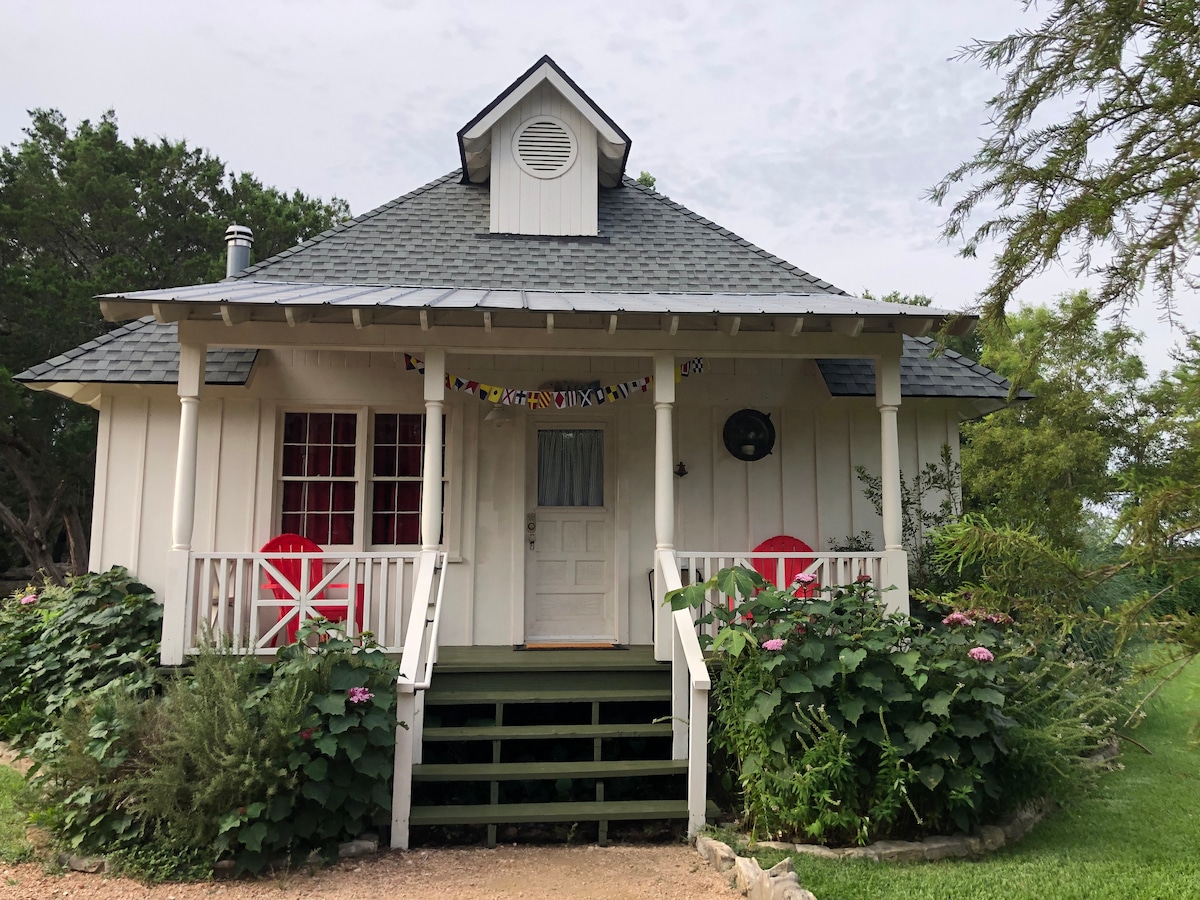 Mysig romantisk stuga på en mjukt sluttande gård på den vackra Blanco River. Se stjärnorna i den fantastiska bubbelpoolen. Det finns en utomhusdusch som jag förbättrar regelbundet. Kalkoner och rådjur är ofta gäster på baksidan. Sov till ljudet av floden som flyter förbi. Smart-TV, fullt utrustat kök, kolgrill, matbord utomhus och även besöksstolar... njut!