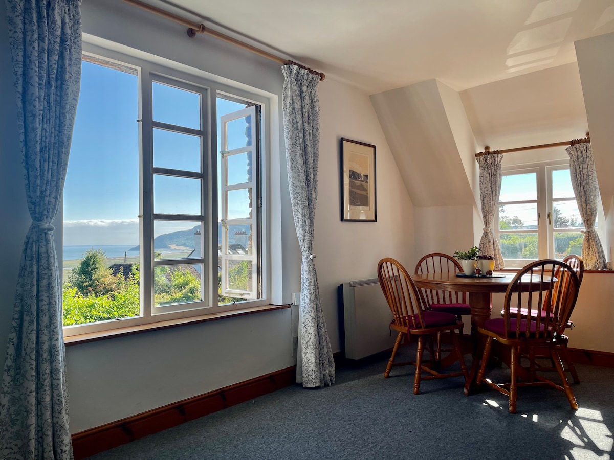 Rymlig fristående lägenhet med uteplats i Edwardian North Hill, med utsikt över staden Minehead. Perfekt för den som vill njuta av havet, cykling, vandring eller bara en landsbygdssemester. Idealiskt beläget, bara 2 minuters promenad till stadens centrum, stranden, Exmoor National Park och South West Coastal Path och 10 minuters promenad till The West Somerset Railway. Privat ingång på bottenvåningen inklusive förvaring för cyklar och promenadutrustning. Uteplats med bord, stolar och grillplats. Självständig incheckning.