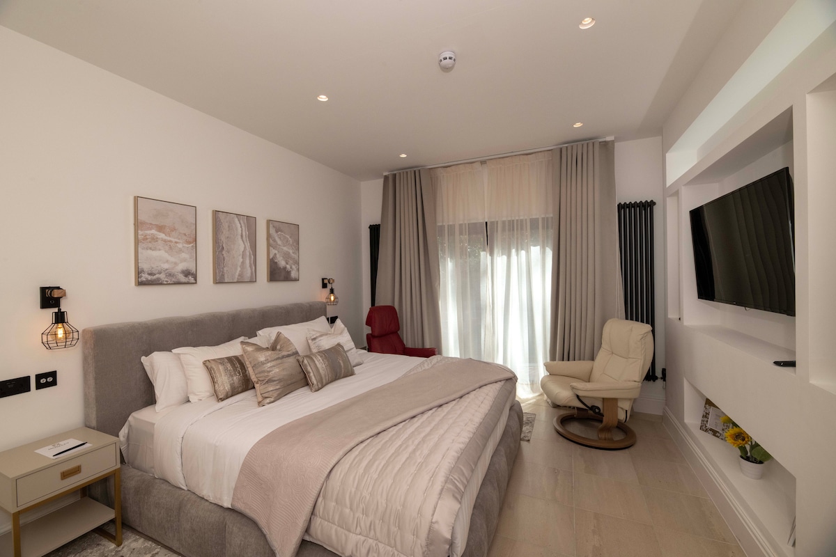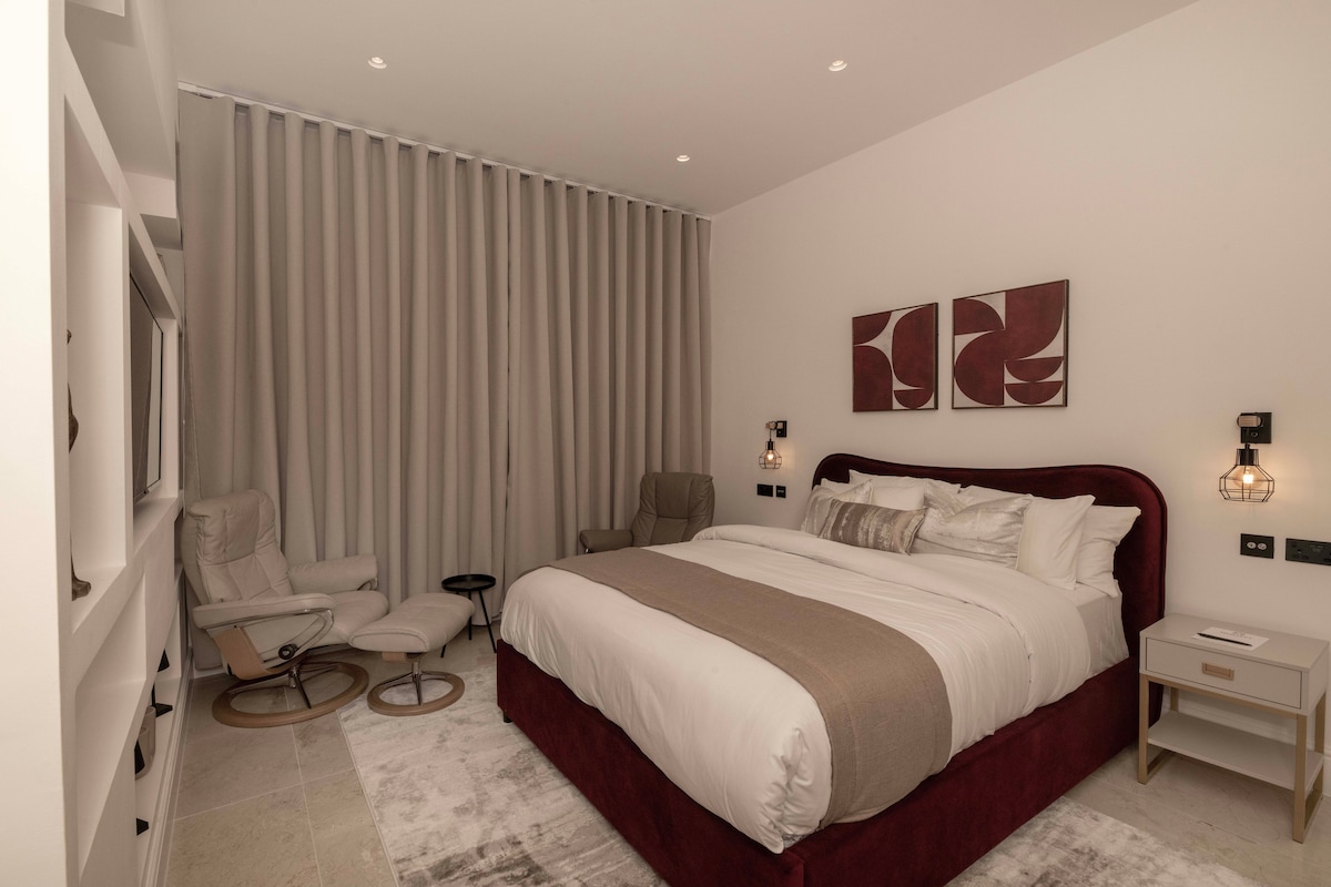 Welcome to the Lapis Room, a cozy and stylish retreat inspired by the deep, rich tones of lapis blue and refined gold accents. The name Lapis reflects the room’s striking blue velvet textures paired with subtle gold detailing, creating a luxurious yet inviting atmosphere.