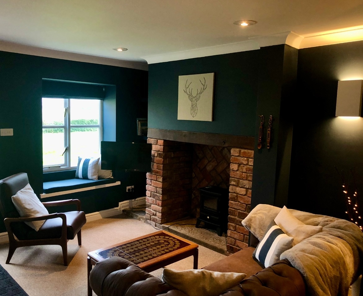Vackert renoverad rymlig flygel av stor periodfastighet. Tillgänglig för bokning på minst 4 nätter som anländer vilken dag som helst Ett sovrum med dubbelsäng (standard dubbelsäng) med, en-suite, hårtork bastu, dusch och toalett, stort vardagsrum/matsal med fastbränslebrännare, kök med spis, mikrovågsugn, liten elektrisk ugn och under disk kylskåp. Hundvänligt