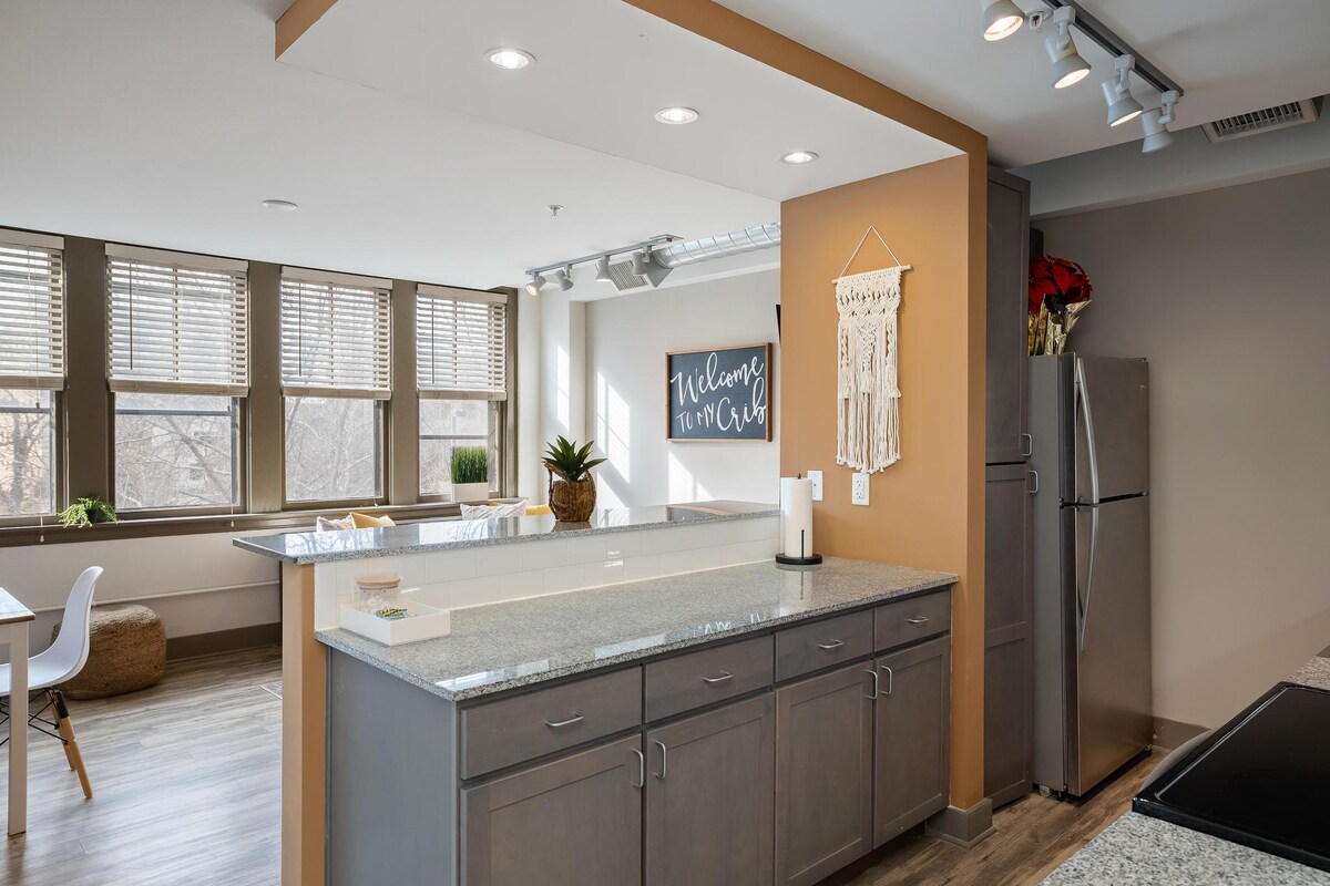 ✨ Denna eleganta lägenhet i Kansas City är den perfekta basen – idealisk för besökare under VM 2026, bara 10 minuter från Arrowhead Stadium! Njut av ett vackert sovrum, fullt utrustat kök, höga tak och tillgång till pool, bubbelpool, gym, gratis Wi-Fi och parkering. ⚽ VM 2026 – Bara 10 minuter till Arrowhead Stadium! ⭐5 minuters promenad till Kansas City Convention Center 🏢 ⭐10 minuters promenad till T-Mobile Center 🏟️ ⭐12 minuters bilresa till Kauffman Stadium ⚾