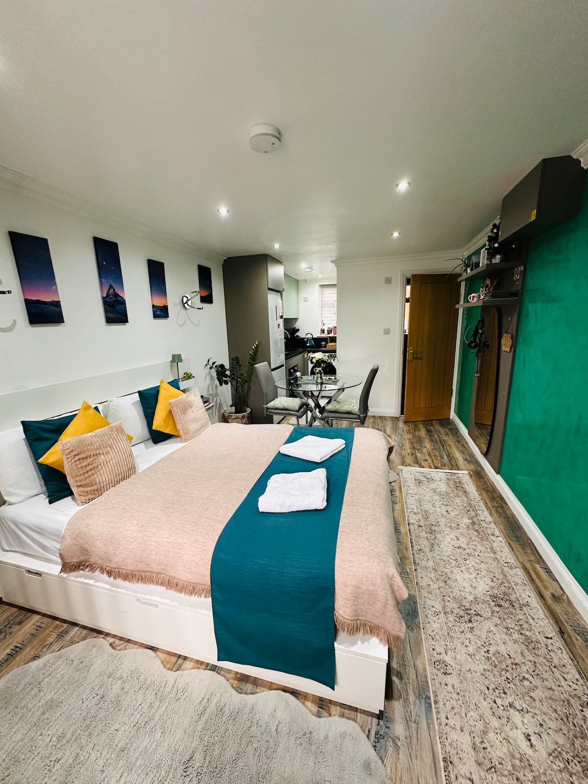 Slå dig ner och koppla av i detta moderna Annexe-sovrum som har sin egen dörr och är separat från resten av huset, så att du kan njuta av ditt utrymme, din integritet och ditt oberoende. Rummet är kompakt, men innehåller väsentligheter för att göra ditt besök bekvämt, såsom te och kaffe, modernt eget badrum, duschprodukter, handdukar, bredbandsinternet och en superbekväm säng. Granne med en park, 8 minuters bilresa till flygplatsen och butiker längs vägen, du kommer också att njuta av att vara riktigt bekvämt beläget.