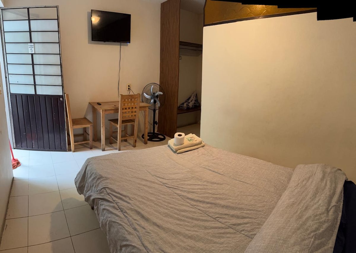 Bekvämt rum; mysigt och säkert; precis framför Veracruzs normala skola, nära ISSSTE-kontoren, bra läge, det har en elektrisk dusch (alltid varm), TV med Roku; parkering på innergården.
