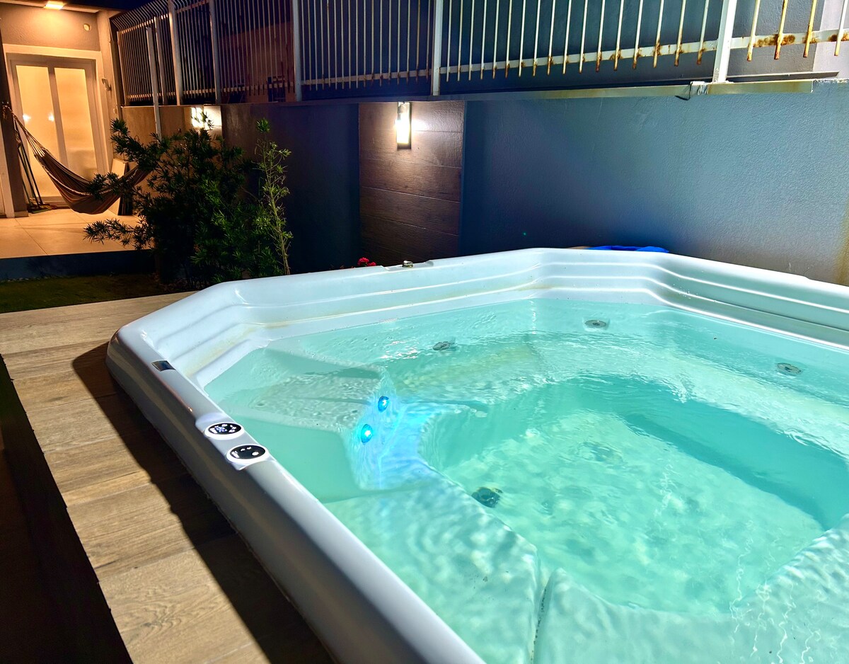 Vi accepterar husdjur! Ha kul i denna superutrustade fastighet i ett av de mest kompletta lägenhetskomplexen på kusten! Ekologisk öppen spis, privat uppvärmd SPA på terrassen med utsikt över sjön, pergola, luftkonditionering, wifi, grillplats! Bara 3 minuters bilresa från stranden! Fastigheten och bostadsrättsföreningen har: * Största uppvärmda inomhuspoolen på kusten * Bastu * Spelrum * Gym * Barnområde * Tennisbanor Du och din familj kommer att älska det! Se recensionerna! Ta bara med badhanddukar.
