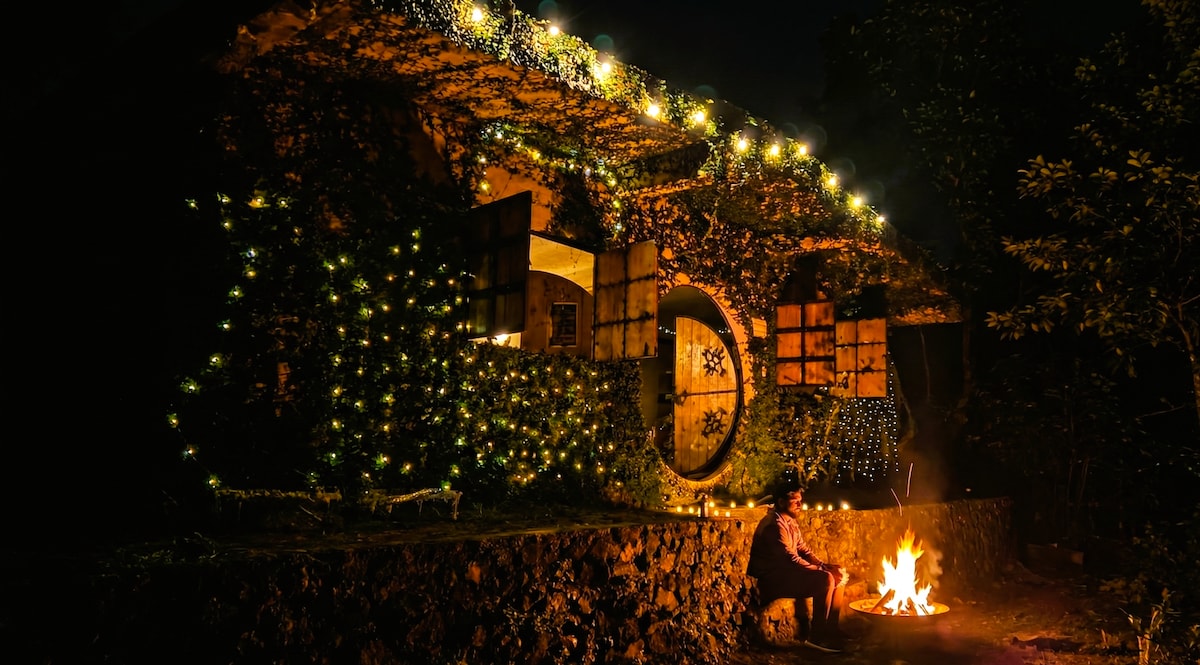 Cabaña Hobbit · Romance en Bosque y Cascada