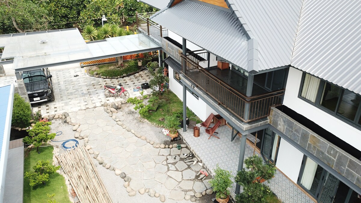 Särskild 20% rabatt för de första 10 kunderna. Välkommen till vår gård, där du kan bo nära naturen. Fullständiga bekvämligheter för barnfamiljer, inklusive: - 4 sovrum (upp till 16 personer); - Simbassäng, fotbollsplan, badmintonbana, biljardbord, utomhusgrill, lummig hydda för sammankomster, karaoke och färska grönsaker från vår trädgård. Bara 15 km till Binh Chau Hot Springs, 30 km till Ho Tram Beach. Hoppas att du får en minnesvärd upplevelse att återförenas med naturen med familj och vänner.