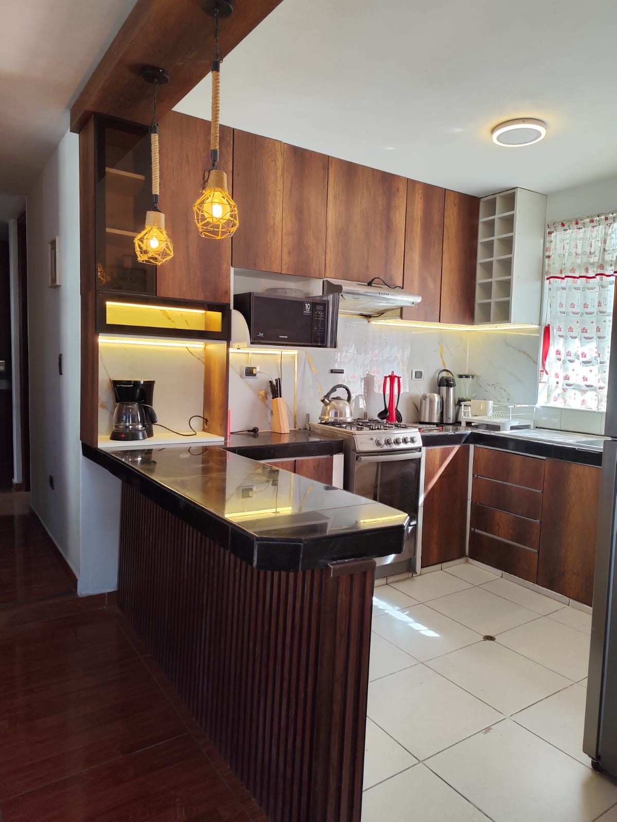 Vacker, modern och mysig lägenhet i distriktets vackraste urbanisering, bra läge, med säkerhet och självständig inkomst (första våningen), med parker och rekreationsområden, mycket nära Mall Aventura Plaza, Lambramani Park och Metro och Tottus Supermarket, 10 minuter från stadens centrum. Välutrustad privat lägenhet med 3 TV-apparater (Wifi och Disney). Perfekt för par, familjer eller affärsresor. Rengörings- och desinfektionsprotokoll för lägenheten före varje bokning.