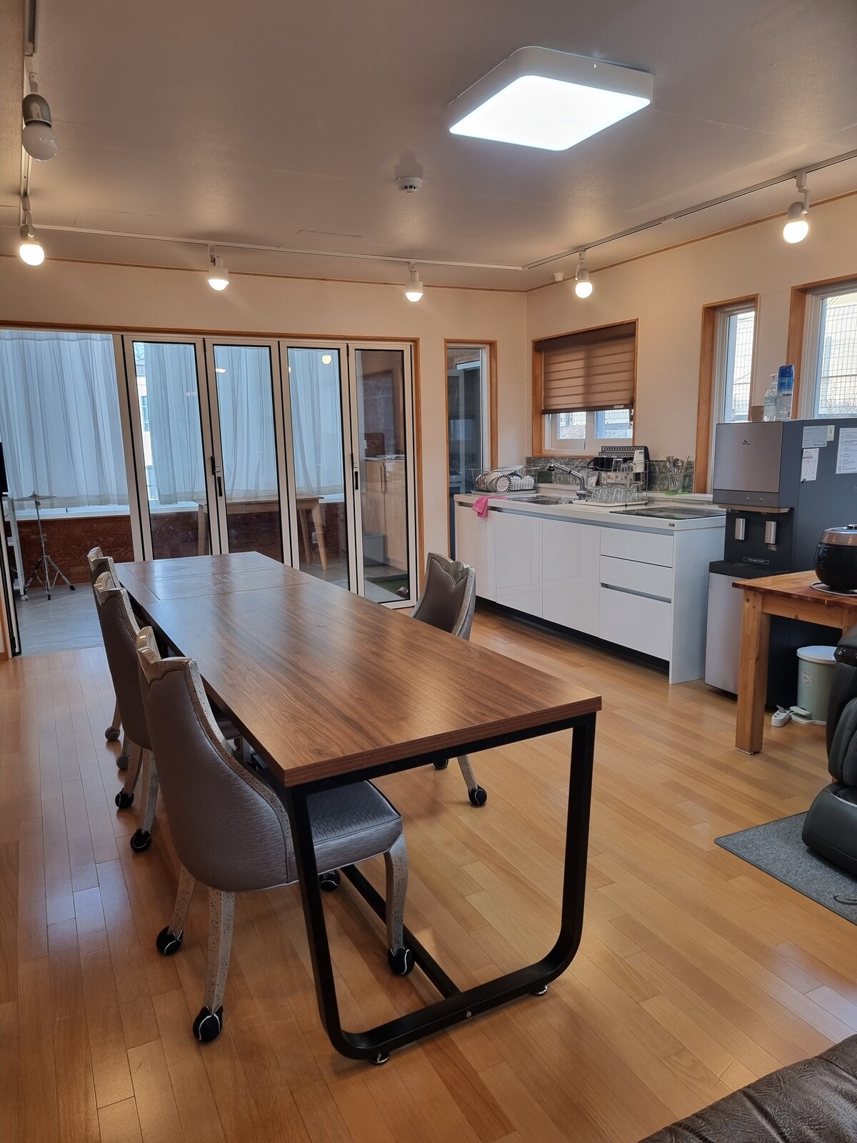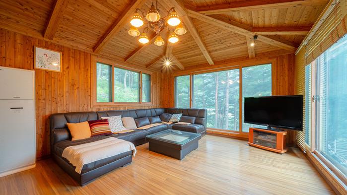 Det är ett ensamt hus i bergen^^ Det är ett autentiskt Hanok-hus, men renoveringen inuti får det att kännas som ett normalt hus ^ ^ (Eftersom det är i bergen... det finns en hel del insekter på sommaren, och du kan se några flitiga myror på vintern) Staden kan nås med bil på 10 minuter, medan havet också kan nås med bil på 10 minuter. I närheten finns södra hamnar, gazeller och Jungdong. Det finns också golfbanor som Maple Beach. Karaokemaskinen är också installerad ^ ^ Den har typiska karaoke-ljudanläggningar. Det finns gott om parkering, och gräsmattan gör att barn kan hoppa och leka. ^ ^