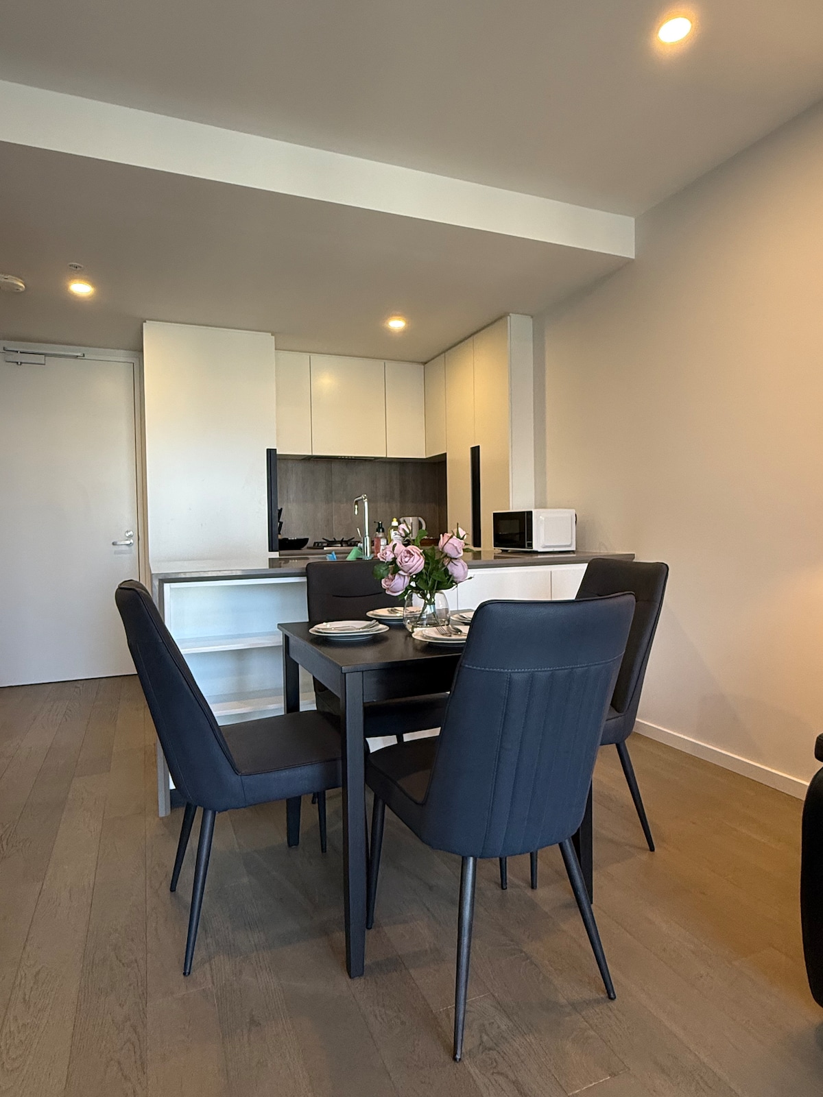 Denna eleganta lägenhet med 2 sovrum ligger i ett utmärkt läge. Sekunder bort från Ikea & Victoria Garden Shopping plaza. Spårvagn 109 & 12 utanför lägenheten stannar vid Southern Cross station/ Marvel stadium / Skybus. En privat balkong med hisnande utsikt och solnedgångar över stadens silhuett och Yarrafloden. Bara några steg från Yarra Trail för promenader, nära restauranger. Concierge dygnet runt. Simbassäng (inträdesavgift: vardagar 100 USD och helger 300 USD), gym, spa, bastu, bio och grillplats på taket.