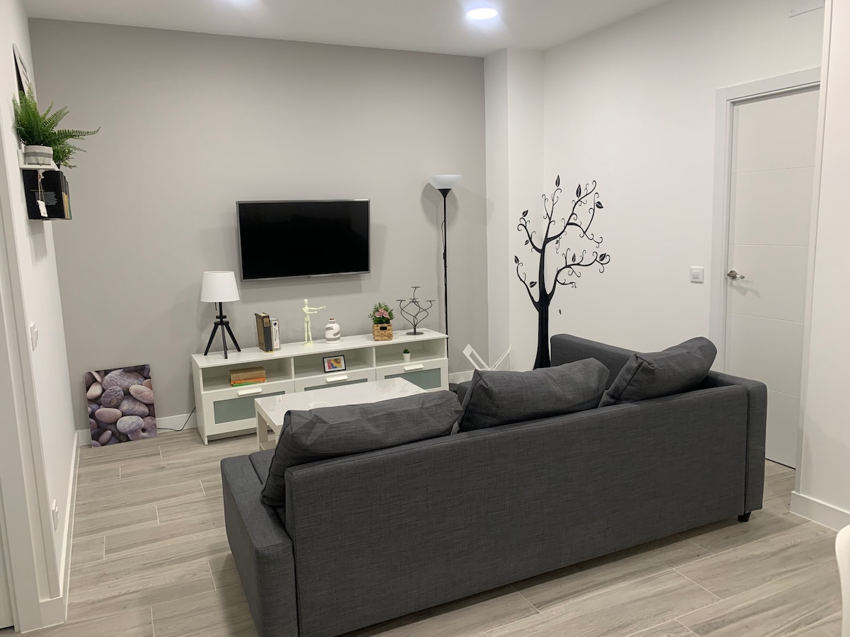 Lägenhet på gatuplan. Perfekt för affärsresor, studieresor, medicinska frågor, etc. med keramisk spis, kylskåp, tvättmaskin/torktumlare, diskmaskin, varm/kall luftpump, mikrovågsugn, Nespresso, kompletta köksredskap, vattenkokare för infusioner, dubbelsäng, bäddsoffa 190x150, smart TV, Wi-Fi, larm, direkt tunnelbanelinje till Sol (15"), stort badrum, regndusch, automatiska geldispensrar. Trädgårdsområde, mycket enkel parkering, med två lekplatser med gungor