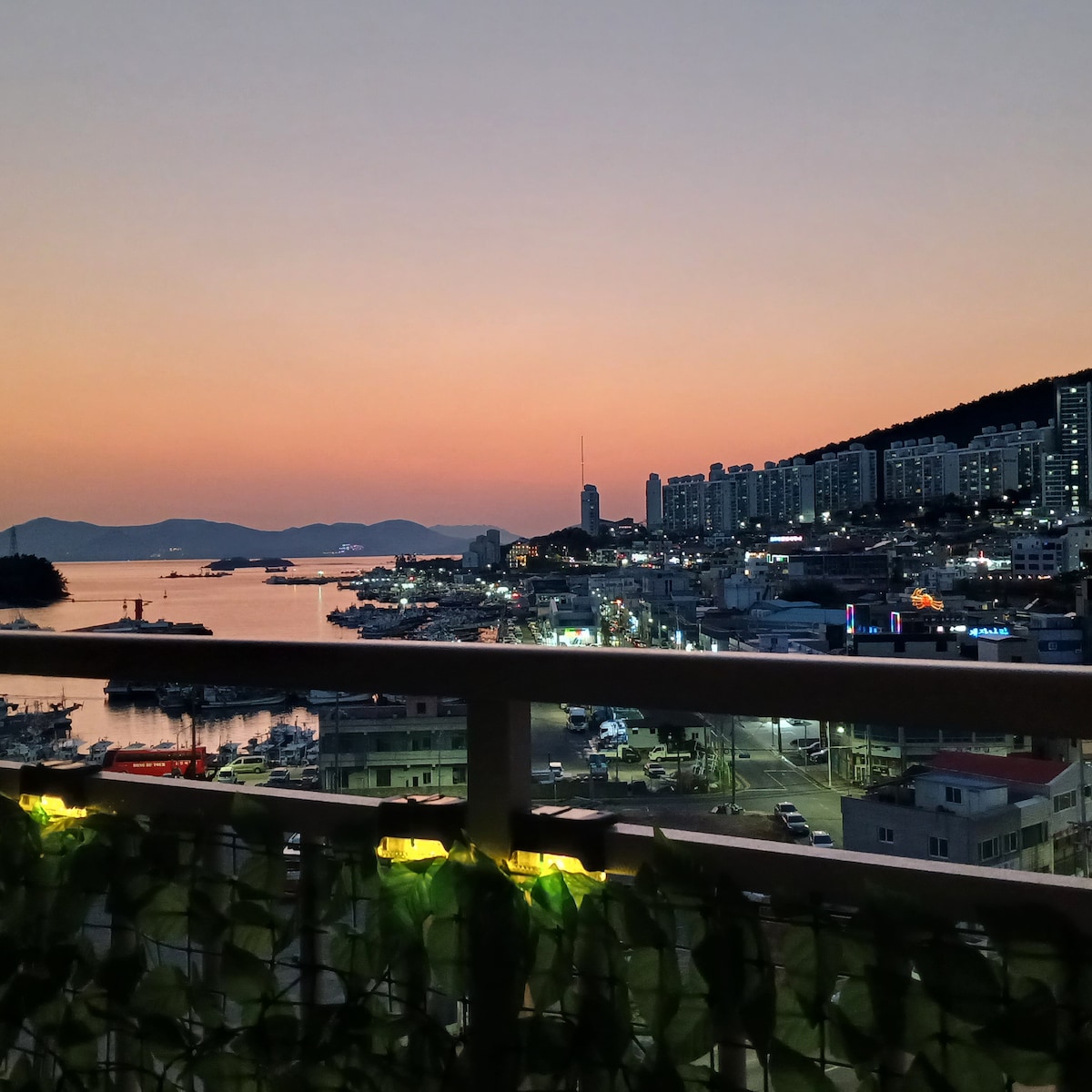 Ett snyggt och mysigt boende framför Yeosuhavet