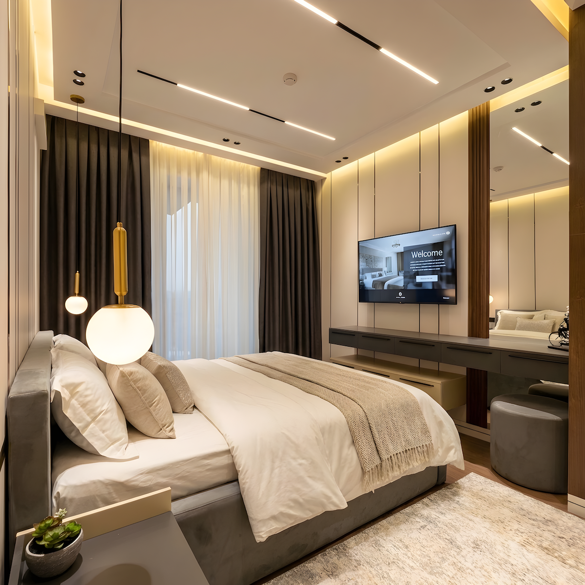 Fördjupa dig i atmosfären av premium designerlägenheter i hjärtat av Tasjkent. Vardagsrummet med en bouclésoffa, eleganta möbler och marmor soffbord skapar en 5-stjärnig hotellkänsla. Lägenheten har två sovrum: ett stort sovrum med en stor säng och ett andra sovrum med två separata sängar — perfekt för en familj, vänner eller kollegor. Ett omklädningsrum med belysning, ett fullt utrustat kök, ett badrum i boutiquehotellstil. Perfekt för gäster som uppskattar komfort, estetik och en hög servicenivå.