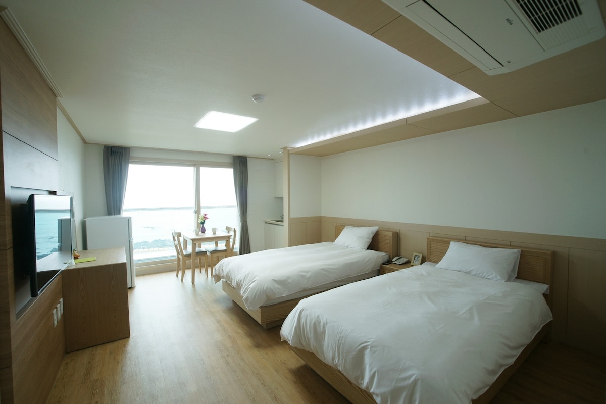 4,62 av 5 i genomsnittligt betyg, 137 omdömenThe Beach Pension_12-pyeong tvillingsrum (2 enkelsängar), Yongdam Coast Road, 5 minuter från Jeju flygplats, privat terrass, havsutsikt