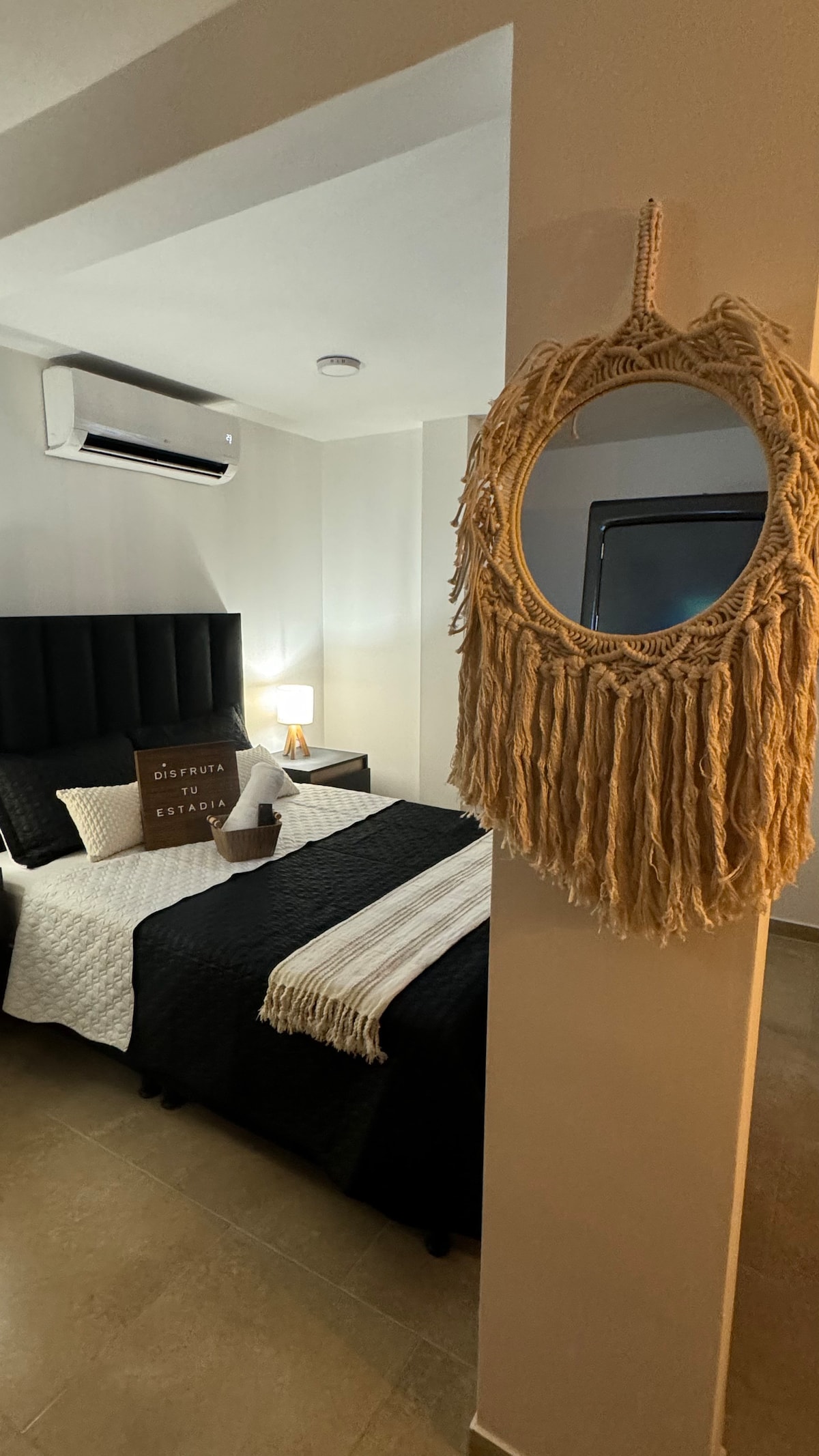Njut av fusionen av modern komfort i vår studiolägenhet inbäddad i Buga, Colombia. Detta genomtänkta utrymme erbjuder en fridfull tillflykt mitt i stadens pulserande turistliv. Koppla av i den mysiga atmosfären i vår studiolayout, där varje hörn återspeglar en blandning av modern minimalistisk design och avslappnad lockelse. Med luftkonditionering som garanterar din komfort medan du njuter av din vistelse. FOTO-ID KRÄVS