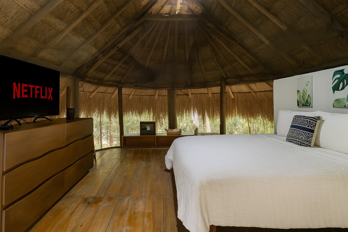 Fördjupa dig i hjärtat av mayadjungeln i vår moderna, miljövänliga villa - komplett med en privat cenote, hisnande möten med vilda djur och en takpool perfekt för stjärnskådning. Denna fridfulla tillflyktsort är utformad med fönster från golv till tak och erbjuder en unik koppling till naturen utan att offra moderna bekvämligheter. Gäster beskriver upprepade gånger sin vistelse som "magisk", "oförglömlig" och "över förväntan".