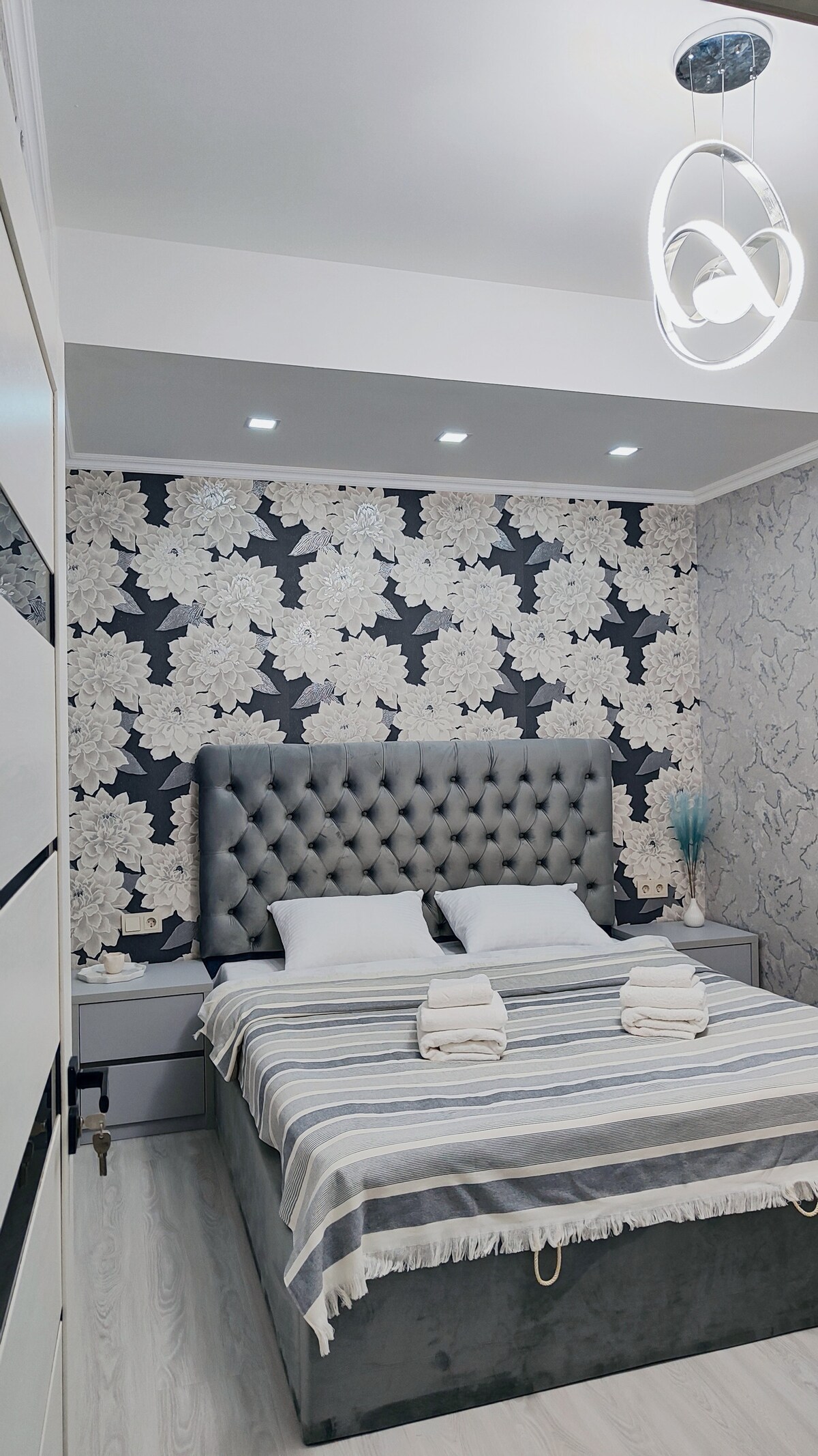 Vi erbjuder dig en rymlig lägenhet i en ny byggnad, med fräsch, modern renovering och nya möbler. Finishen är gjord i lugna toner i skandinavisk stil. Fönstren i lägenheten vetter mot en lugn innergård, vilket gör att du kan få en underbar natts sömn innan du utforskar sevärdheterna i Tashkent) Från balkongen i klart väder finns en fantastisk utsikt över bergen! Området är blandat, bredvid de nya byggnaderna finns en traditionell Mahalla för Uzbekistan, och du kan också se en moské med en smaragd kupol)