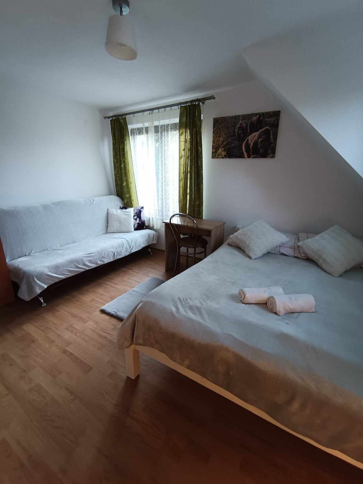 Adressen är korrekt,du måste svänga vänster omedelbart efter 4 trästugor till vänster,senare till höger. Lugnt,lugnt grannskap,med utsikt över bergen,rymlig lägenhet med bioetanol öppen spis fullt utrustat kök,matrum, vardagsrum, badrum,utgång från vardagsrummet direkt till trädgården. Entrédörr och trappa för samarbete med de boende i huset. Mataffär i området, busshållplats 5 min bort, skidbackar inom några minuters bilresa