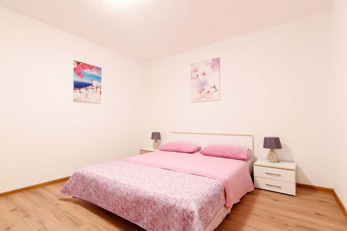 Lägenheten Ružica ligger i lilla Šušnjar, bara 30 km från Zadar. Så om du vill ha en lugn och avkopplande semester, utan de vanliga sommarmassorna är detta ett perfekt ställe för dig. Det är perfekt för familjer med barn. Lägenheten ligger bara 150 meter från stranden, gäster kan använda grill, trädgård och gratis parkeringsplats. Vi har SUP att hyra. För sightseeing kan du besöka populära staden Zadar, nationalparken Paklenica och Krka, ravinen av floden Zrmanja och berget Velebit
