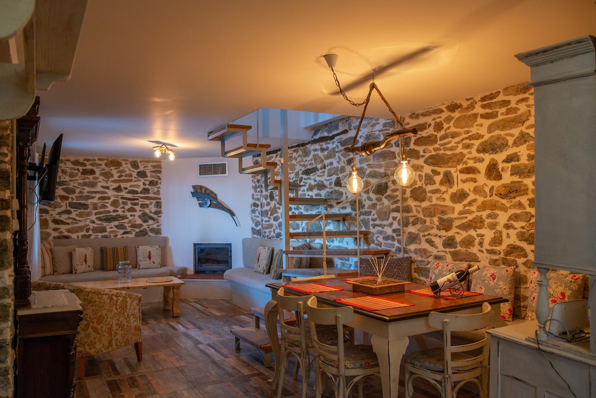The villa is next to the Chorefto beach. Built with the basic natural materials from the area, stone and wood. The materials used are considered art constructions, perfectly safe for health and give the entire building a natural colour image. My villa is suitable for couples, business travellers and families (with children).