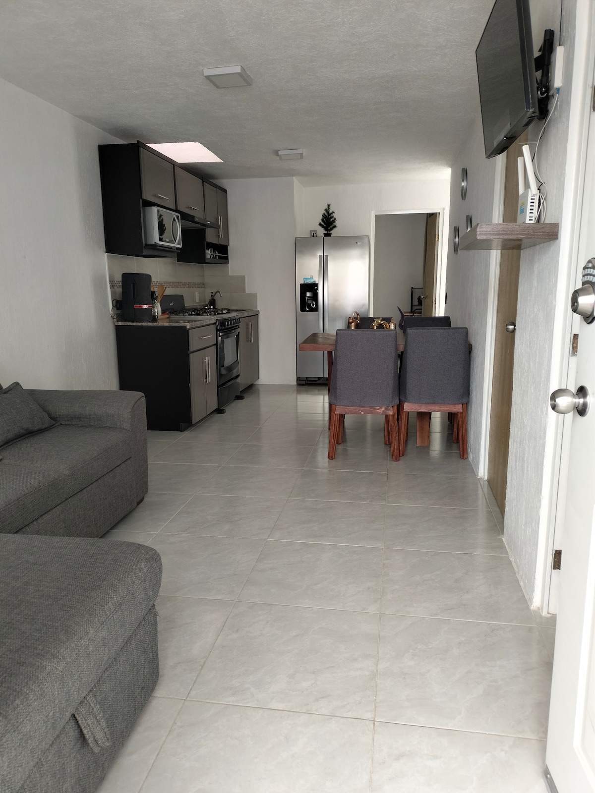Vackert loft, mycket bekvämt och coolt med terrass. På bottenvåningen, rullstol, för långa vistelser, 1 dubbelsäng och en matt bäddsoffa, med fästen i badrum och dusch, lämplig för personer med operation och funktionshindrade, utrustat kök, vardagsrum och TV 50 tum 4k Nära universitet, Panamericana, Univa, Autonoma, ITESO, Tec de Monterrey, Ciudad Judicial, Estadio Akron. Nära 3 köpcentra Espacio Galerias, Plaza Guadalupe och Plaza Galerias.