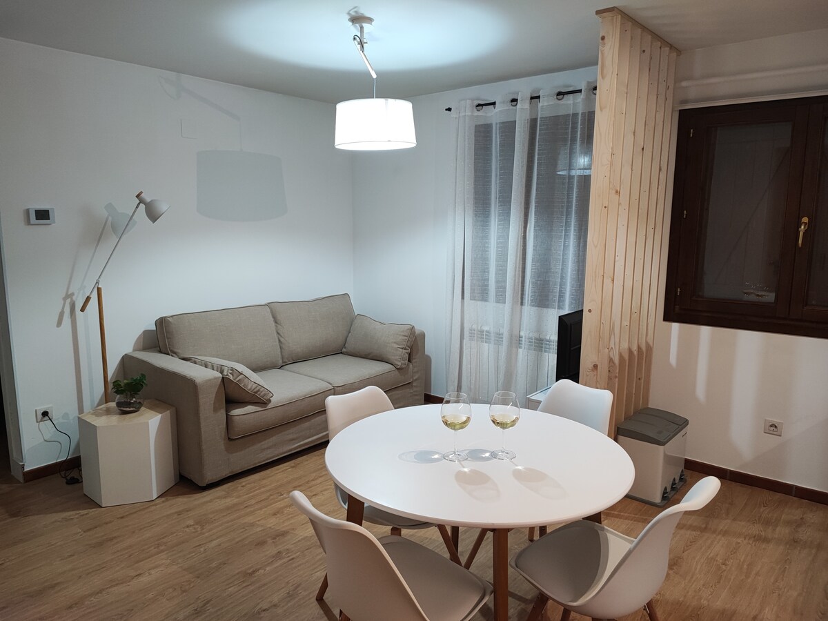 Ground-floor cozy apartment in Villanúa 🏔️ with a spacious garden-like terrace, perfect for sunny breakfasts or starlit dinners. Ideal for couples or families who love skiing ⛷️, hiking 🥾, and nature 🌲. Wi-Fi, Smart TV, full kitchen, air conditioning, and heating. Pets welcome. Easy parking at the door and just a few steps to access. Enjoy a charming retreat in the heart of the Spanish Pyrenees.