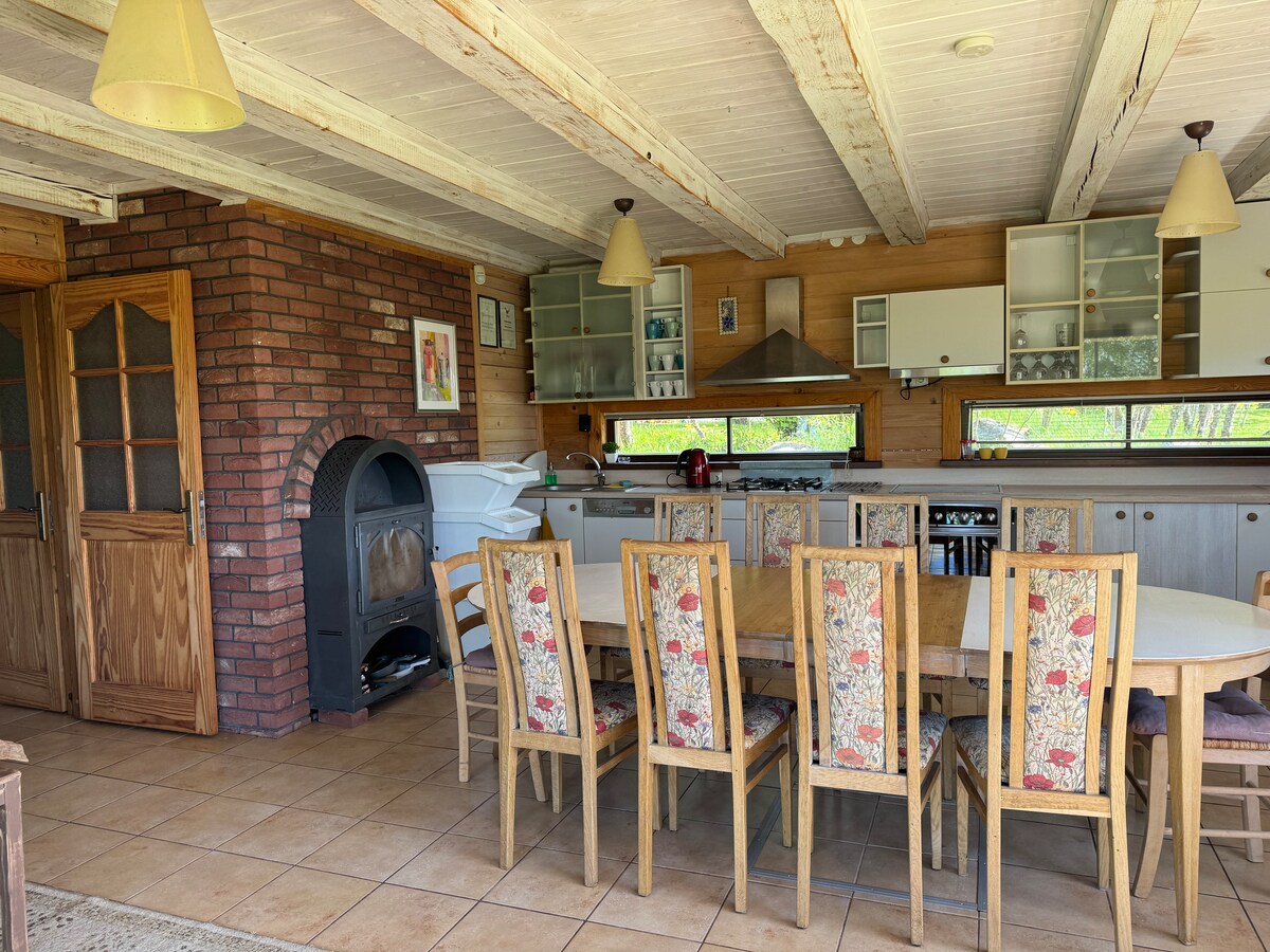 Hembygden ligger i skogen omgiven av en av de renaste sjöarna i Litauen Šventoji . Det är en bra möjlighet att komma bort från stadens buller. Hembygden har basket, volleyboll, lekplatser för barn. Det finns också en bastu och bubbelpooler (dubbel och sex) . Under den varma perioden av året kan vi erbjuda kajakpaddling, paddleboarding och mycket av det omgivande området med motorcyklar. Det finns en glaskupong tillgänglig mot en extra avgift, som är lämplig för övernattningar och vinter. Utsikten över hallen är grillplatsen.