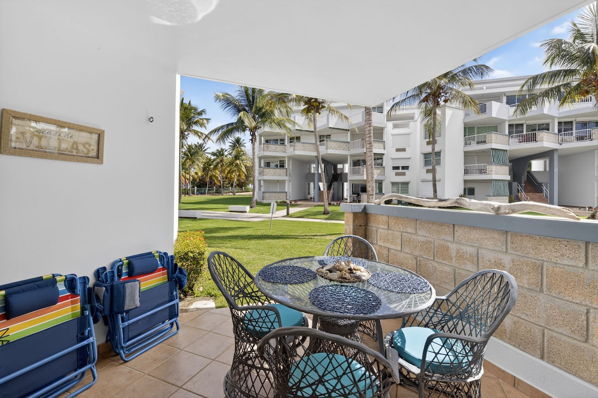 HAPPINESS BEACH APARTMENT är en modern men mysig tillflyktsort med strandtillgång bara 1 minuts promenad bort. Beläget i ett gated community med säkerhet dygnet runt, har den två pooler och en privat hörnlayout på bottenvåningen med balkong och terrass tillgång. Bekvämt nära mataffärer, El Yunque Rainforest, restauranger, köpcentra och mer! Perfekt för en avkopplande semester... Vi fortsätter att följa strikta rengöringsrutiner för din säkerhets skull.
