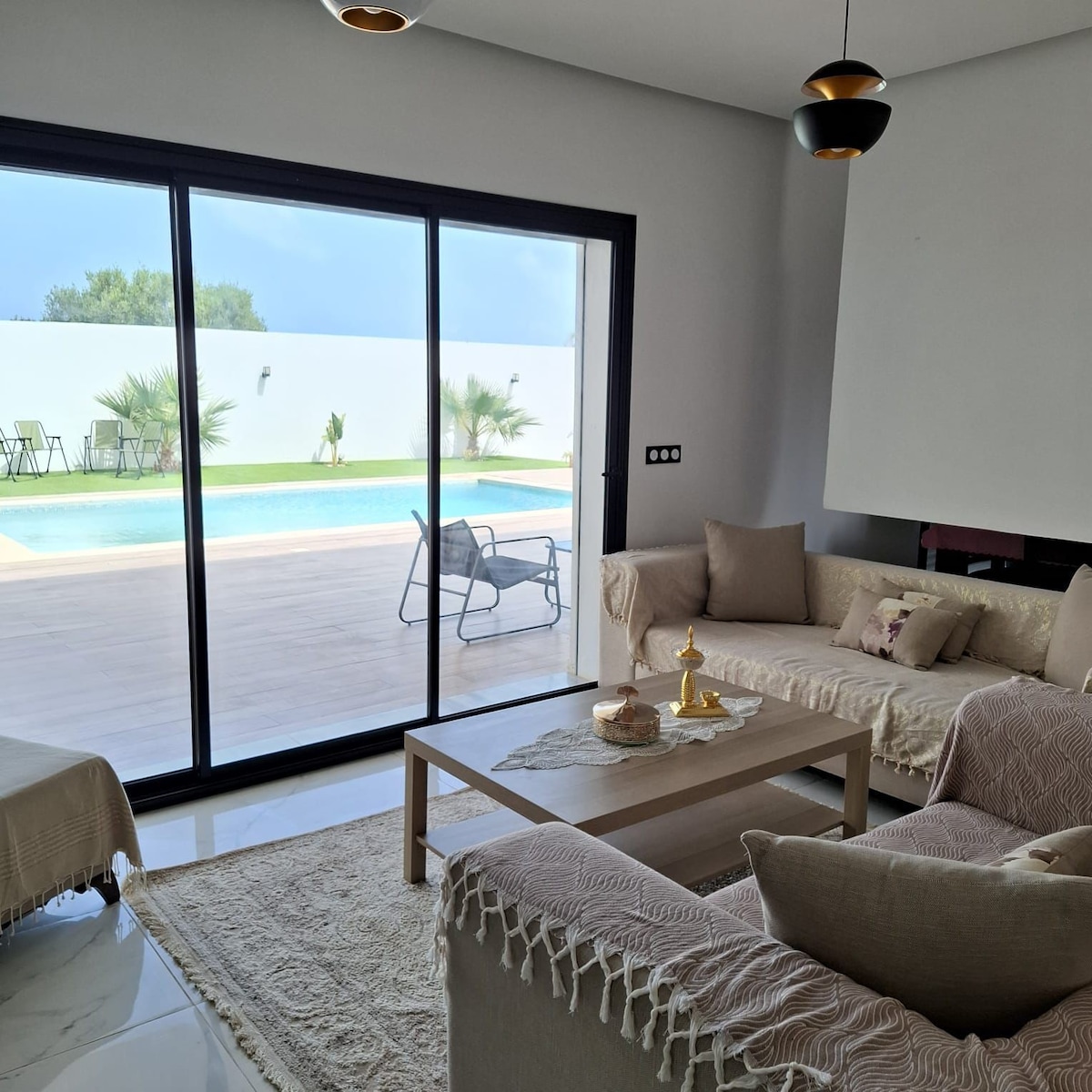 Njut med din familj i denna vackra traditionella villa med en pool som erbjuder bra tider i perspektiv. Det ligger i Sangho, i turistområdet Zarzis, 3 minuter från stranden till fots, 45 minuter från Djerba-Zarzis flygplats och 15 minuter från Zarzis centrum. Huset är rymligt och välutrustat. De 4 luftkonditionerade sovrummen har ett eget badrum. Du kommer att njuta av 2 vardagsrum, också luftkonditionerade, ett utrustat kök, en uteplats och vackra terrasser.