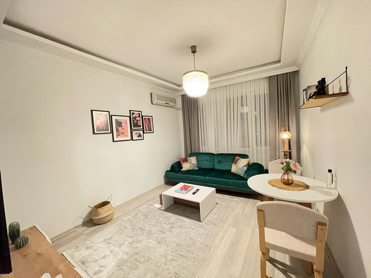Välkommen till Heart of the City – Zey – ditt hem hemifrån! Denna ljusa och glada 3-rumslägenhet ligger mitt i hjärtat av staden, bara 2 minuters promenad till Marmaray, så du kommer att vara nära allt. Lägenheten är nyinredd i en modern och mysig stil, med färgglada detaljer som gör att utrymmet känns varmt och välkomnande. Oavsett om du reser med familj eller vänner finns det gott om utrymme att koppla av och känna sig bekväm. 5 min till Fisekhane 2 min till Marmaray (Metro) station