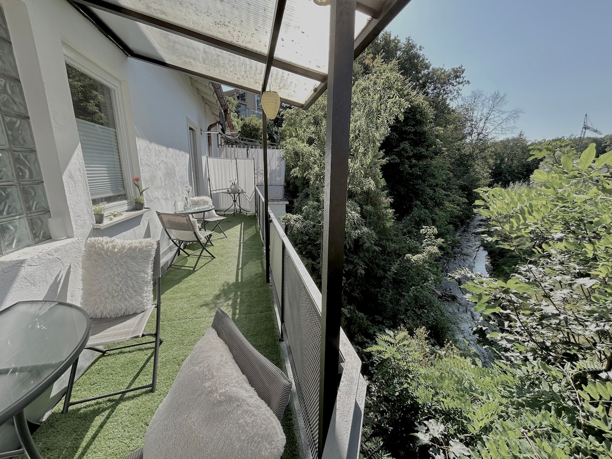 Exklusivt boende i modern stil! Perfekt för singlar eller par - ha din frid och njut en tid ute. - Skidåkning, vandring, cykling, vandring och mer - Neckar och Schwarzwald-toppar precis utanför dörren - Fitness & Wellness: bastu, hantlar, HulaHoop, 2 Mountainbikes - Fullt utrustat kök med alla prydnader - Fantastisk sydväst solig balkong - Lounge-område (kyla eller distansarbete) - Golvvärme med mysigt parkettgolv i ek - Nespressomaskin - eCharging Wallbox