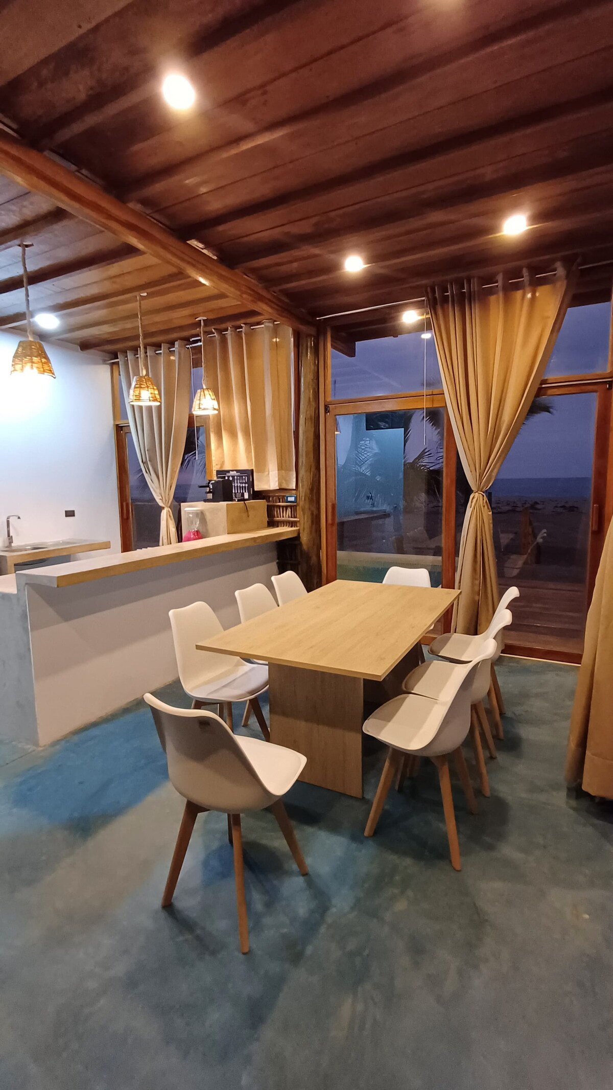 Nuestra casa de playa con piscina y frente al mar está ubicada en una de las playas más hermosas del norte peruano, Huacura – Zorritos. Cuidadosamente diseñada con toques rústicos y modernos para disfrutar en parejas, familia y grupos de amigos con total privacidad y seguridad. Todo el año cuenta con un clima cálido para disfrutar de la playa, arena, olas y piscina privada. Desde el balcón puedes apreciar el mar y los bellos atardeceres que harán de tus vacaciones, inolvidables.