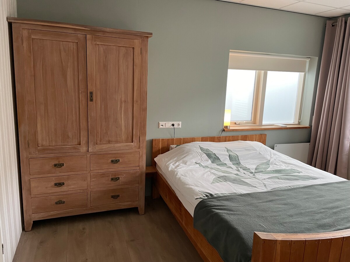 Nybyggt semesterhus 2021 i den vackra byn Zoutelande! Stranden, sanddynerna och den mysiga bygatan ligger alla inom 5 minuters promenadavstånd. Kom och njut av hav, sand och sol och den vackra omgivningen. Den lilla men fina lägenheten (25 m2) har ett separat sovrum med en dubbelsäng (1,60 m bred). Ett vardagsrum med fullt utrustat kök med kombimikrovågsugn, kylskåp, vattenkokare och diskmaskin. Litet badrum med toalett, dusch och golvvärme.