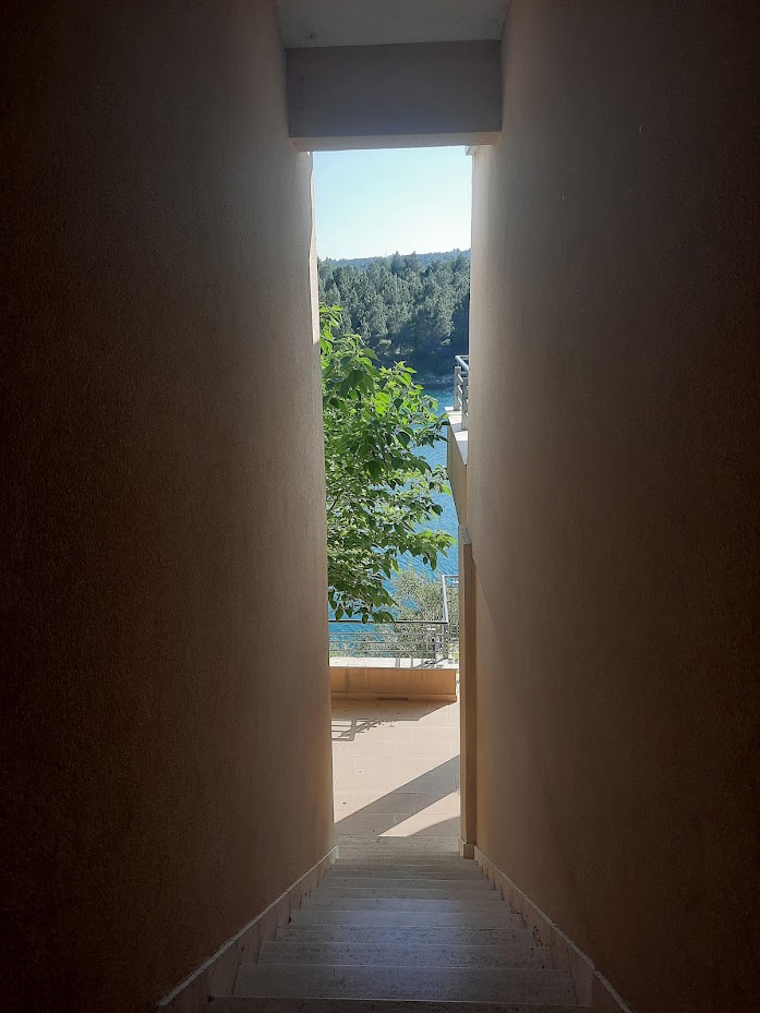 Upptäck den lyxiga lägenheten ”CAPE” i Rtina. Denna designlägenhet med två sovrum på bottenvåningen erbjuder avskildhet, en rymlig innergård och en egen bubbelpool. Ett utmärkt läge, bara några minuters bilresa från Pašman-bron, som kombinerar lugnet i naturen med närheten till Zadar (30 minuter). Det är ett idealiskt val för familjer som vill ha förstklassig komfort. Du kommer att fängslas av den fantastiska panoramautsikten över havet och de närliggande öarna. Men den verkliga stjärnan är den magnifika solnedgången, som du kan njuta av direkt från den varma jacuzzin.