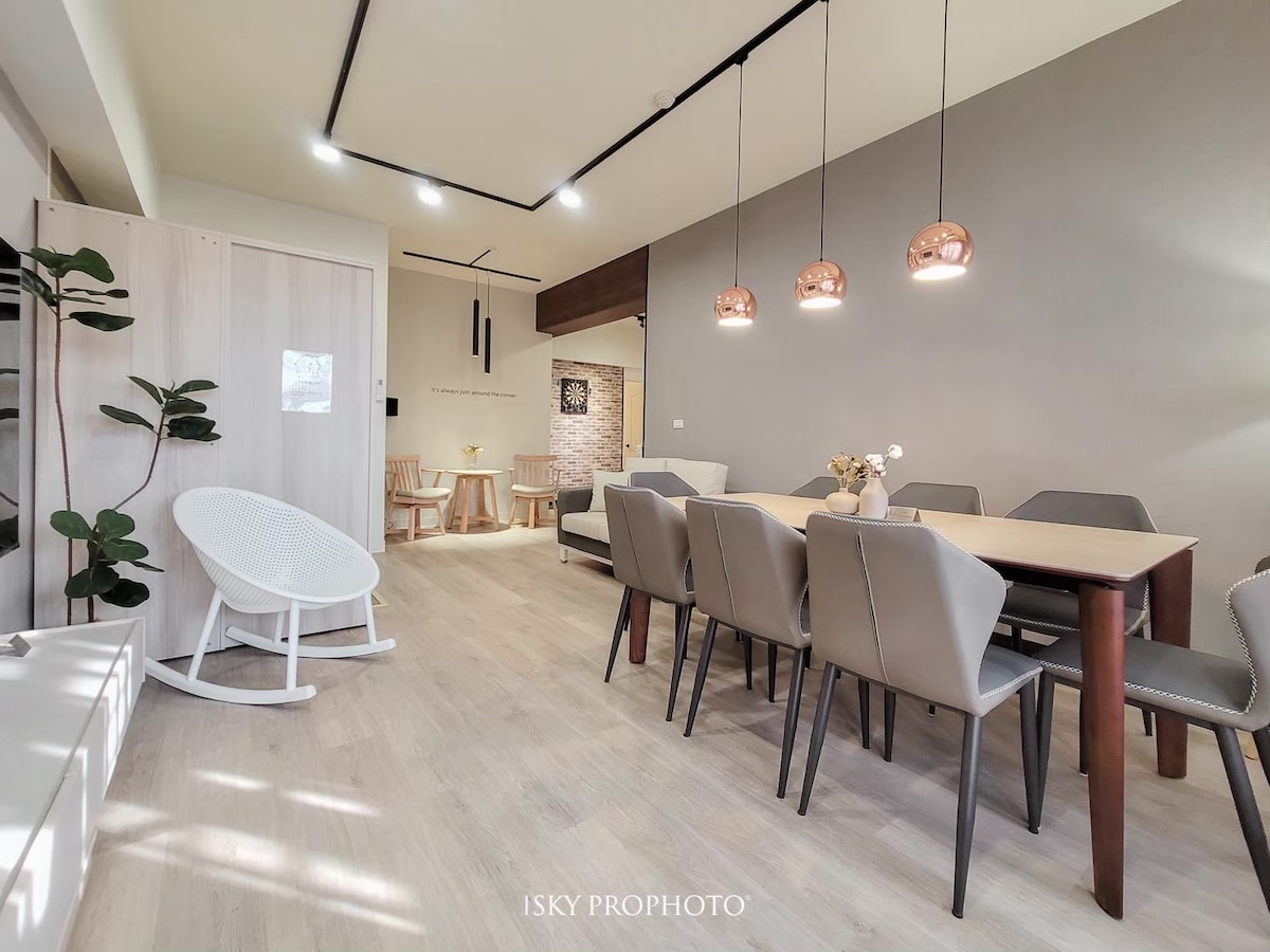 Rymligt och elegant 2-rumsutrymme, beläget bredvid höghastighetsjärnvägen, så att du enkelt kan nå de viktigaste turistattraktionerna i Kaohsiung. Det kan bekvämt rymma 4-7 personer, och du kan använda köket för att laga mat, och vardagsrummet soffan talar om himmel och jord.