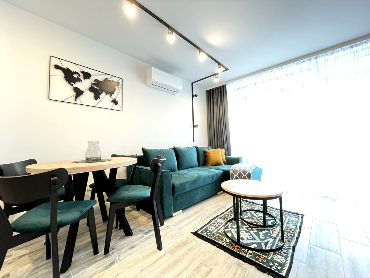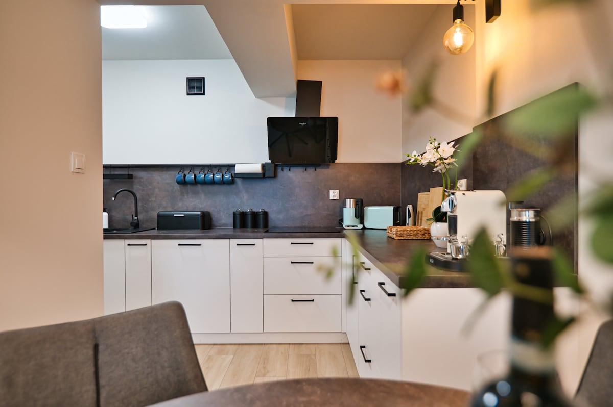 Koppla av på detta unika ställe! Briljant läge bredvid de gröna områdena i Bielsko, restauranger (kaféer, pizzeria och restaurang), bageri, livsmedelsbutik — allt inom 2 minuters promenad. Dessutom finns en busshållplats, en tennisbana, men framför allt populära bergsvandrings- och cykelleder (Enduro Trails) och en pool (säsongsbetonad). Vi är en 10 minuters bilresa från skidbacken Dębowiec, linbanan Szyndzielnia och avfartsleden till Szczyrk (12 km). Tillgänglig åtkomst till HBO-filmer